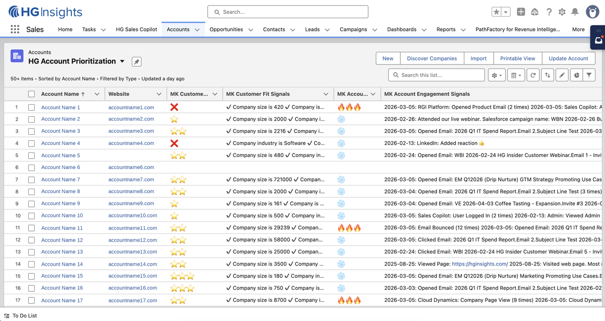 HG’s Revenue Growth Intelligence Platform delivers AI-driven market, account, technology, spend, and buyer-intent insights with analytics and agent automation, combining your first-party data to sharpen GTM strategy and accelerate execution.