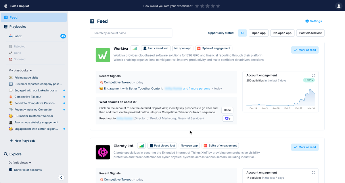 As part of our Platform, Sales Copilot transforms buyer signals into actionable playbooks, helping sales efficiently engage and reduce sales cycles with AI daily guidance, account research, and outreach personalization.